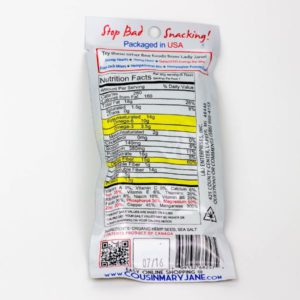 Now, let’s look at the ingredient list: organic hemp seed and sea salt. There’s just something so fulfilling about knowing you’re eating real food, not something manufactured to…let’s face it, resemble food.